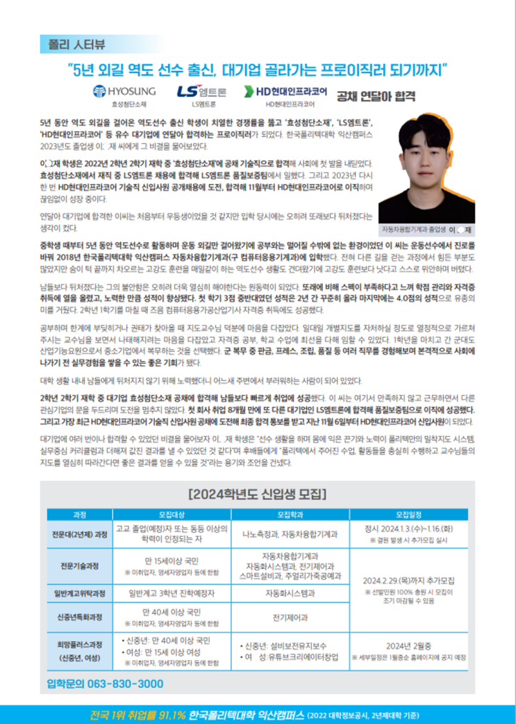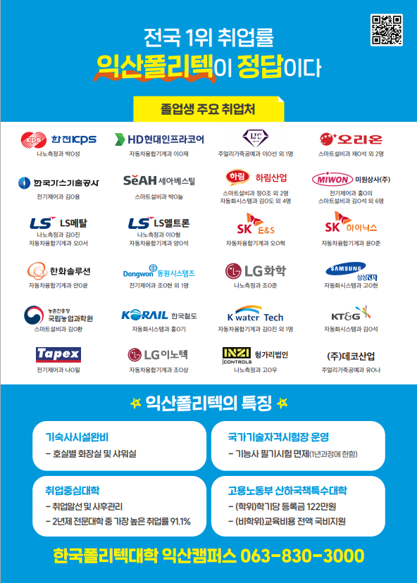 안녕하세요. 한국폴리텍 익산 캠퍼스에서 2024년 신입생을 모집합니다. ✅ 높은 취업률 폴리텍 익산 캠퍼스...