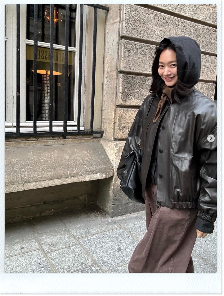 신민아 레더자켓 코디 로에베 가방까지 완벽