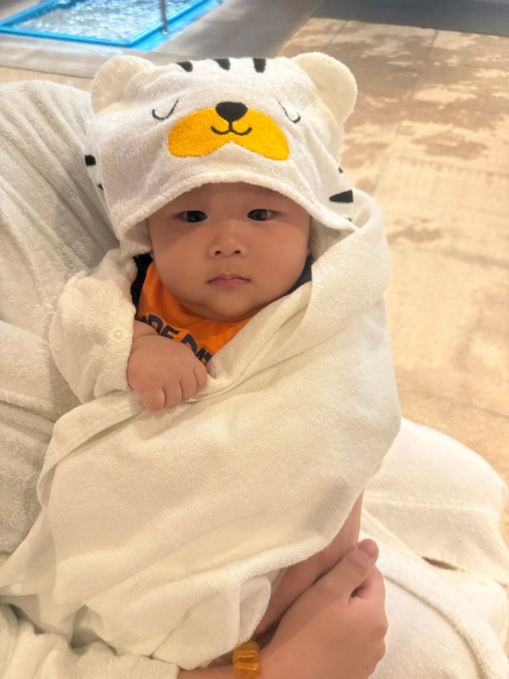 6개월 아기 목욕 수건 추천 물기 닦기 싫어하는 아기에게 딱 귀여운 후드타입 목욕타올 수영장에서 쓰기에...