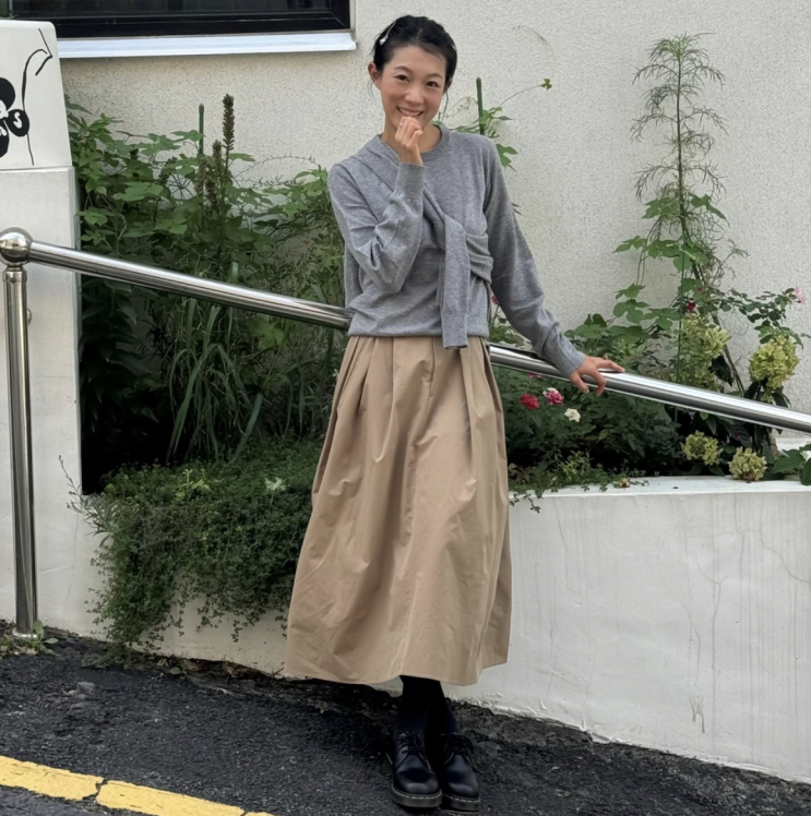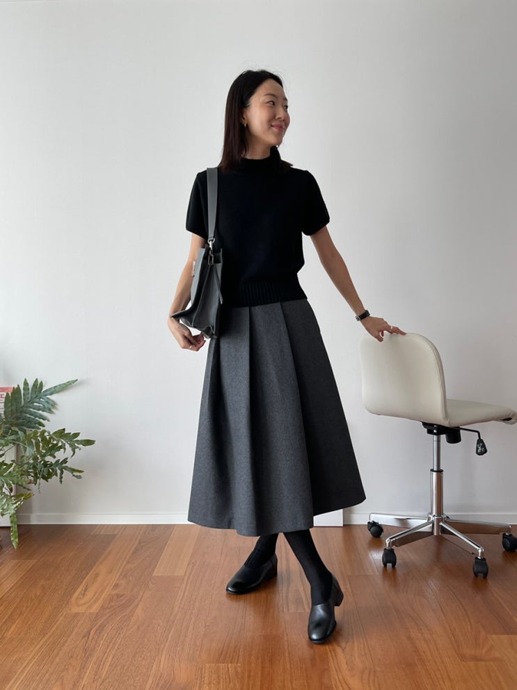 가을 여자 하객패션 / 장재인 목폴라, 플레어스커트 코디