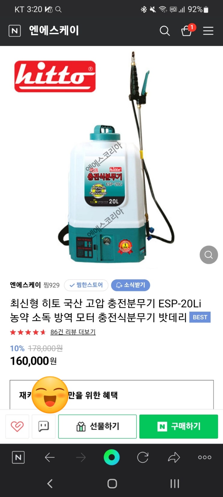 컴펙트하면서 충전 또한 간편한 이엑스파워의 초소형 충전 분무기 EBS-74~!!!