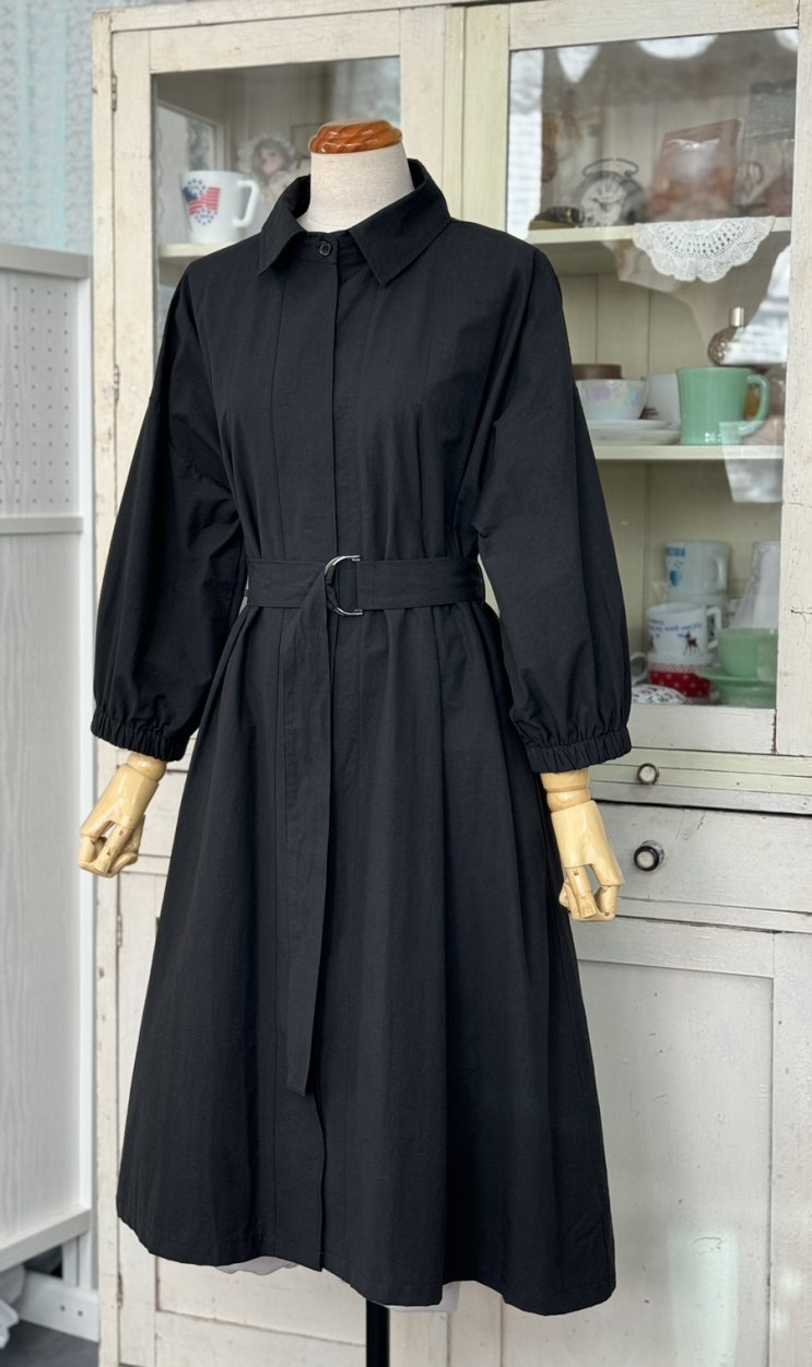 빈티지 블랙 면원피스겸 트렌치코트