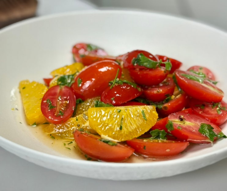 새콤달콤한 토마토와 오렌지로 간단하게 만드는 샐러드 레시피 토마토 오렌지 샐러드 5분 안에 호다닥 만드...