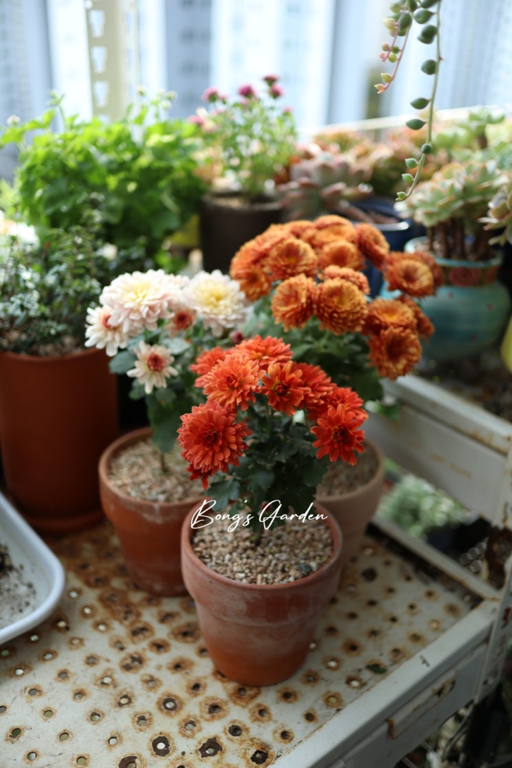 국화 가든멈 Gardenmum / 브란칠리, 브란 파운틴 살몬, 파라디소 오렌지