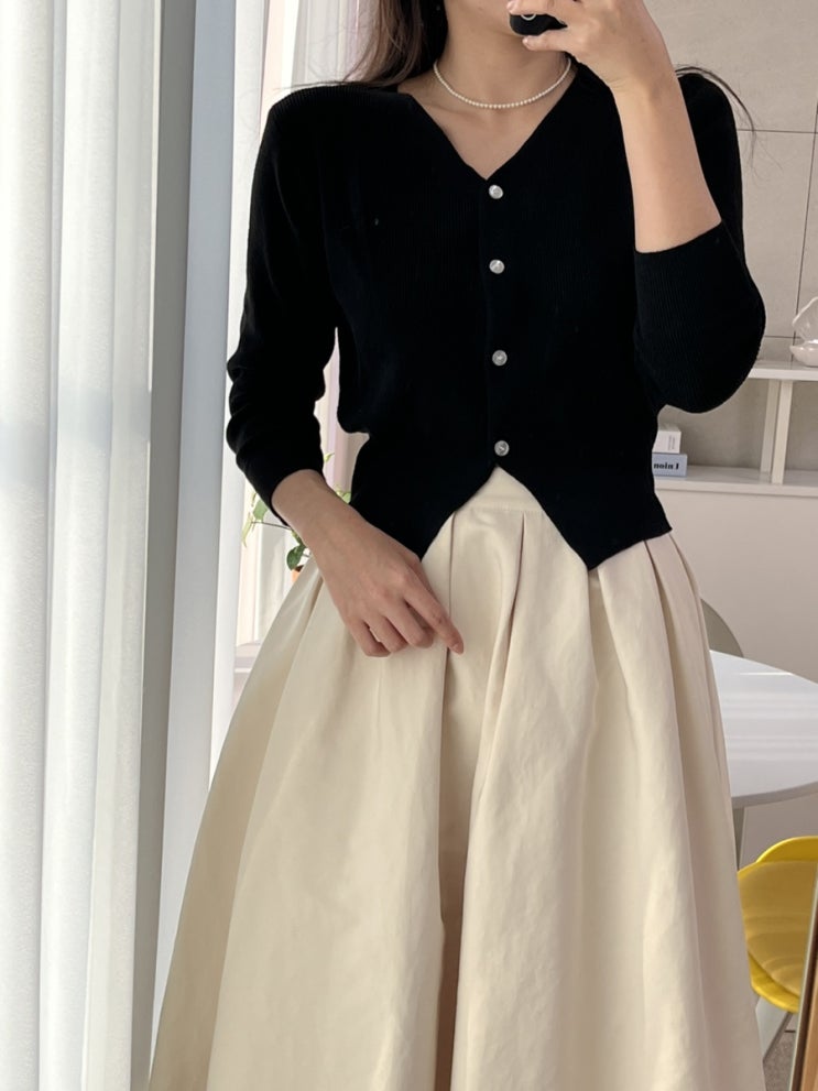 v넥 슬림핏 블랙 니트가디건 코디 사나래스토어