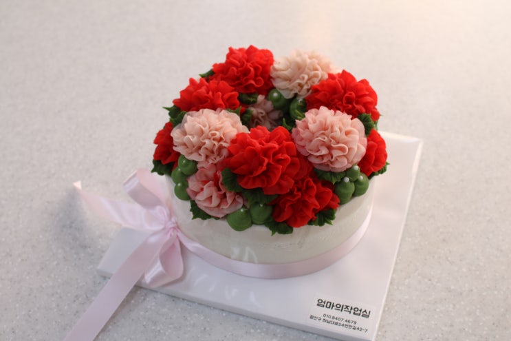 안녕하세요 엄마의작업실 입니다 앙금플라워 떡케이크 입니다 화관형 붉은계열 꽃으로 피워드렸습니다 꽃 ...