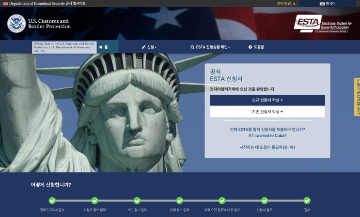 미국 여행 준비 입국 출국 비자 발급 ESTA 이스타비자 신청 비용