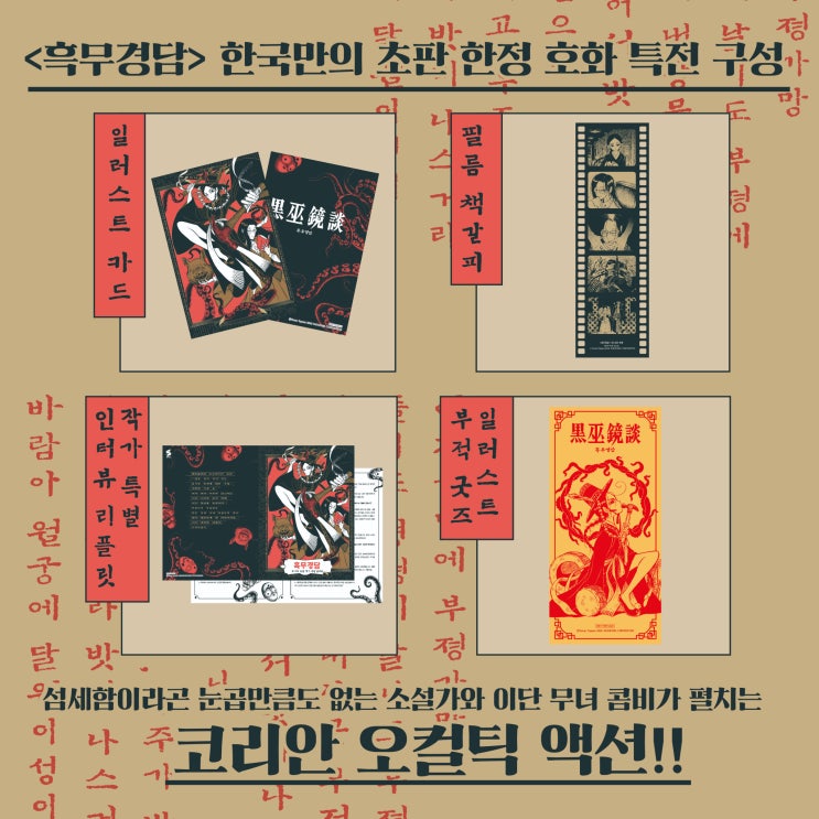 흑무경담 1권 특전, 휘리릭 트...특전이 4개나❓❗️❗️ 1 일러스트 카드 2 필름 책갈피 3 작가 특별 인터...