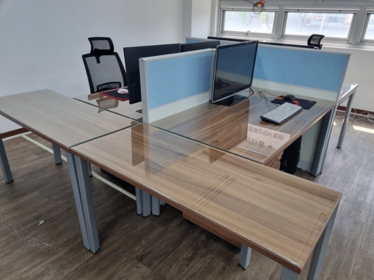 사무실 책상 파티션 설치 입니다. 책상 배치에 따라 팀별, 개인별 배치 합니다. 파티션 높이, 넓이, 색상 ...