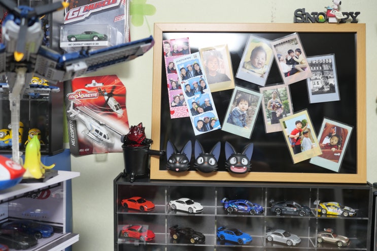 다이소 자석이 붙는 블랙보드와 스티커 고무자석으로 사진 꾸미기 놀이