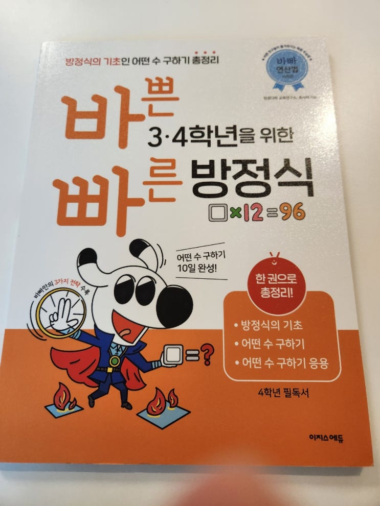 초3 수학문제집 바빠 3,4학년을 위한 방정식 이제 몇달뒤면 초3이 되는 아들! 학군지라 그런지 친구들은 선...