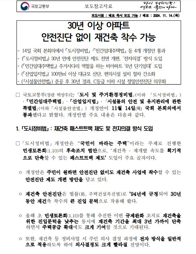 재건축 패스트트랙 도시정비법 30년이상 노후주택 안전진단 단계 철회 부동산 PF 개선방안