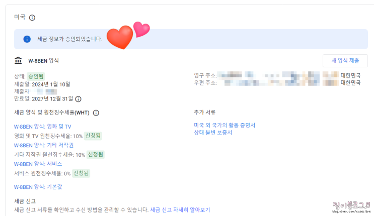 유튜브 개인사업자 애드센스 미국 세금정보 입력방법