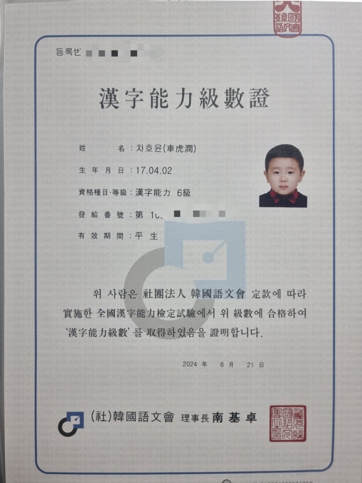 [한국어문회6급,만7세] 24.05월 : 시험응시, 합격자발표(우량,합격)
