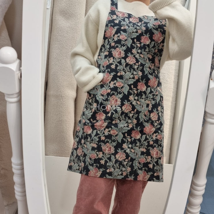 짙은 바탕에 핑크 플라워로 시선을 확 사로잡는 예쁜 방수 앞치마 소개 드립니다~! ? 가을/겨울에는 아...