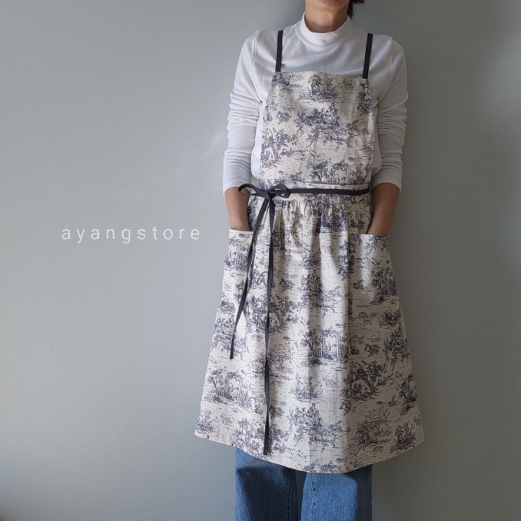 뜨왈 명화린넨 배색끈 셔링 앞치마 제작앞치마 선물하기 좋은 앞치마 뜨왈 명화린넨으로 제작된 배색끈 셔...
