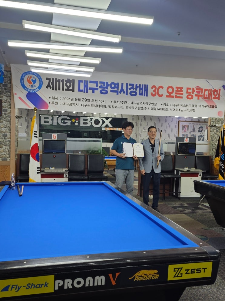 안녕하세요 큐짱 빌리어드 입니다. 2024년 9월 29일 대구광역시 당구연맹에서 '제11회 대구광역시장배...