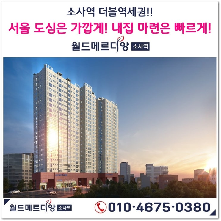 안녕하세요~ 엉뚱마녀입니다^^ 부천 심곡본동에 월드건설산업의 '월드메르디앙 소사역' 주상복합...