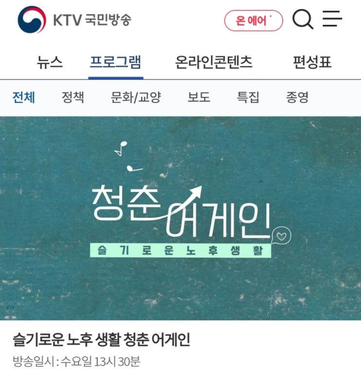 KTV 다큐 "청춘 어게인" 방송합니다.