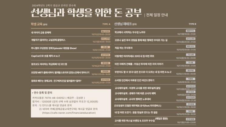 경제금육교육연구회에서 선생님과 학생을 위한 돈 공부라는 내용을 주제로 10월 한 달간 연수를 진행한다. ...
