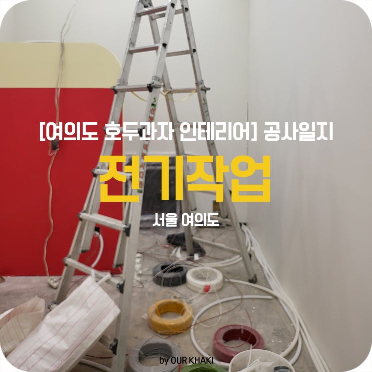 목공작업과 도장작업까지 마친 현장입니다. 오늘은 전기작업을 해줄 거랍니다. 조명을 설치해 공간을 환하...
