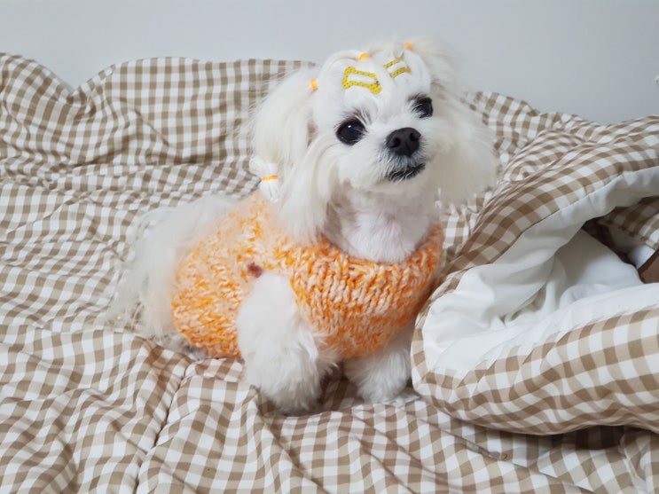 머리 이쁘게 묶어주면 다솜이 기분이 좋은건지 갑자기 신나서인지 이불에 비비고 뒹굴기 ㅜㅜ 뒤돌면 산발...