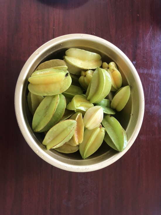 아침에 채취한 스타애플 꽤 많이 따왔다 물에 깨끗이 씻을 필요도 없을거 같다 여기는 먼지도 거의 없고 농...