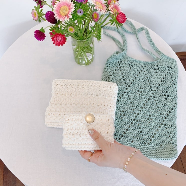 데이지 뜨개 파우치 & 뜨개 지갑