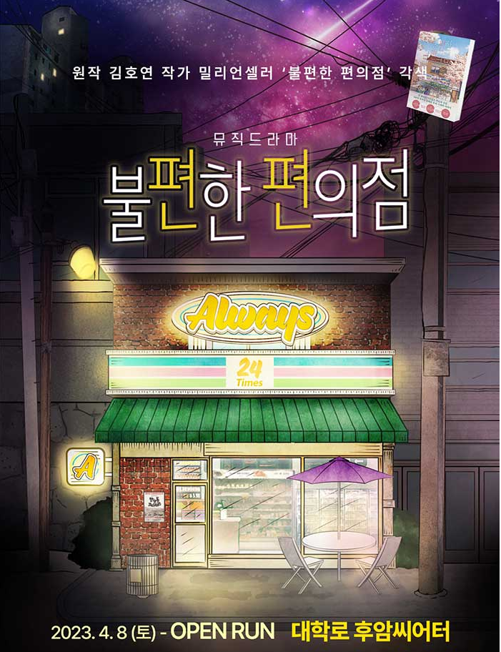 <마감> 뮤직드라마 [불편한 편의점] 초대 이벤트 안녕하세요 이번에는 원작 김호연 작가의 밀리언셀...