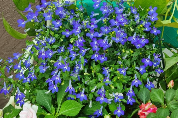 장마가 온다는 소문이 풍길 때 싹뚝 가지치기를 했더니 정작 장마기간 중에 다시 꽃대를 올린 로벨리아 입...