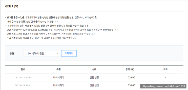 네이버 애드포스트 수익 네이버포인트 전환 사용후기