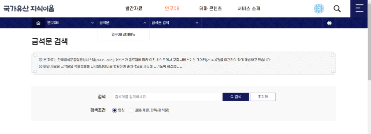 한국금석문종합영상정보시스템 http://gsm.nricp.go.kr 이 사이트 왜 먹통인지 나 혼자 몰라서 한참 헤매다...