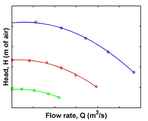 운전 온도가 다양한 송풍기를 위한 성능곡선?