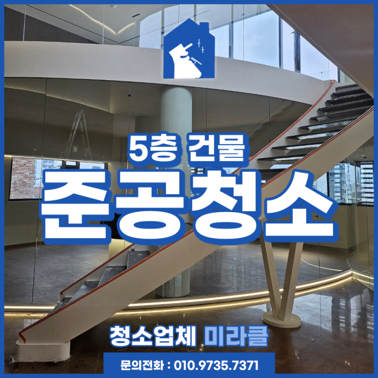 안녕하세요, 청소업체 미라클입니다. 오늘은 강남 논현동의 5층 건물 전체 준공청소를 맡게 되어 그 작업의...