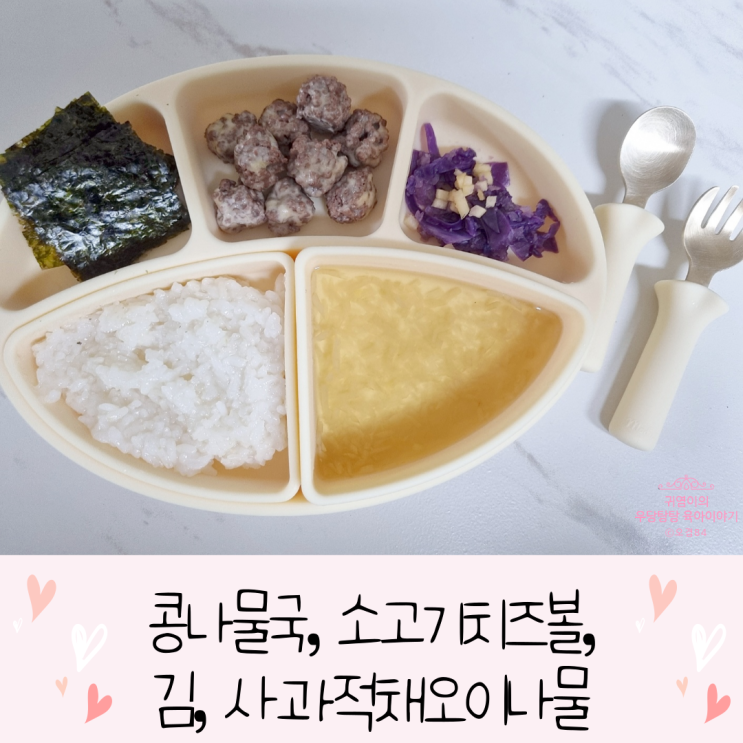 돌아기 반찬 아기 콩나물국 소고기치즈볼 적채오이사과나물 만드는 방법