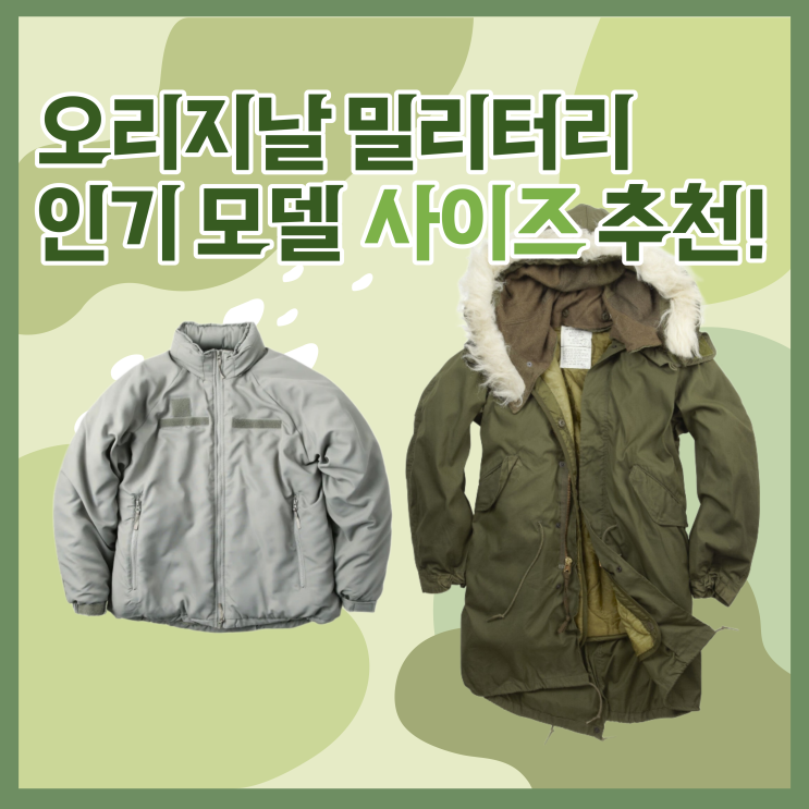 밀리터리룩 남자 오리지날 인기 모델 사이즈 꿀팁! M65 필드자켓 개파카 미군 고어텍스 등 다수