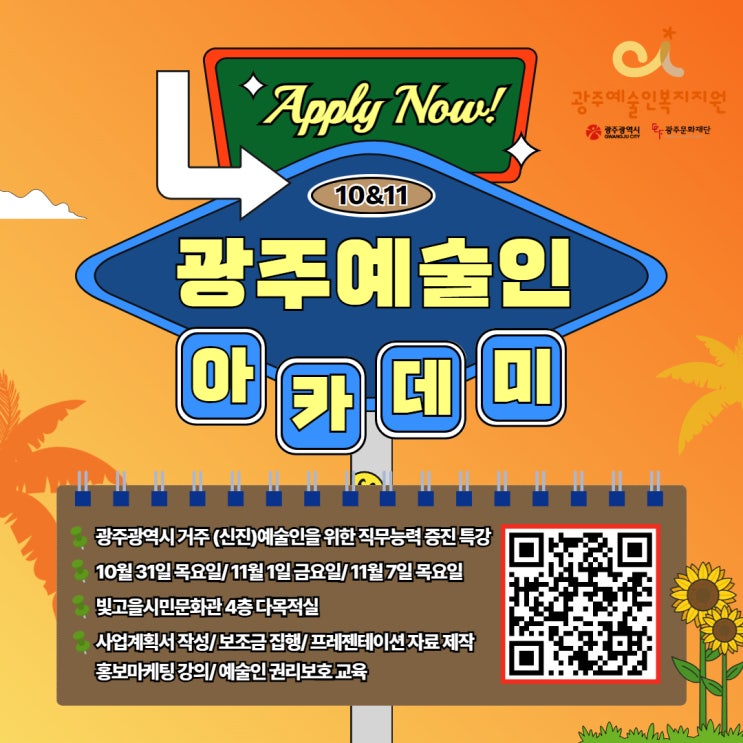 예술 활동 교육 커리큘럼 모아왔어요? 2024 광주예술인아카데미 <신진예술인 과정> 참여자 모집