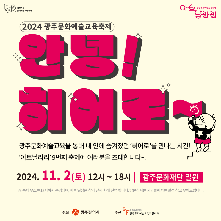 ? 2024 광주문화예술교육축제 아트날라리 <안녕! 히어로~> ? ? 11월 2일 토요일, 오후 12시...