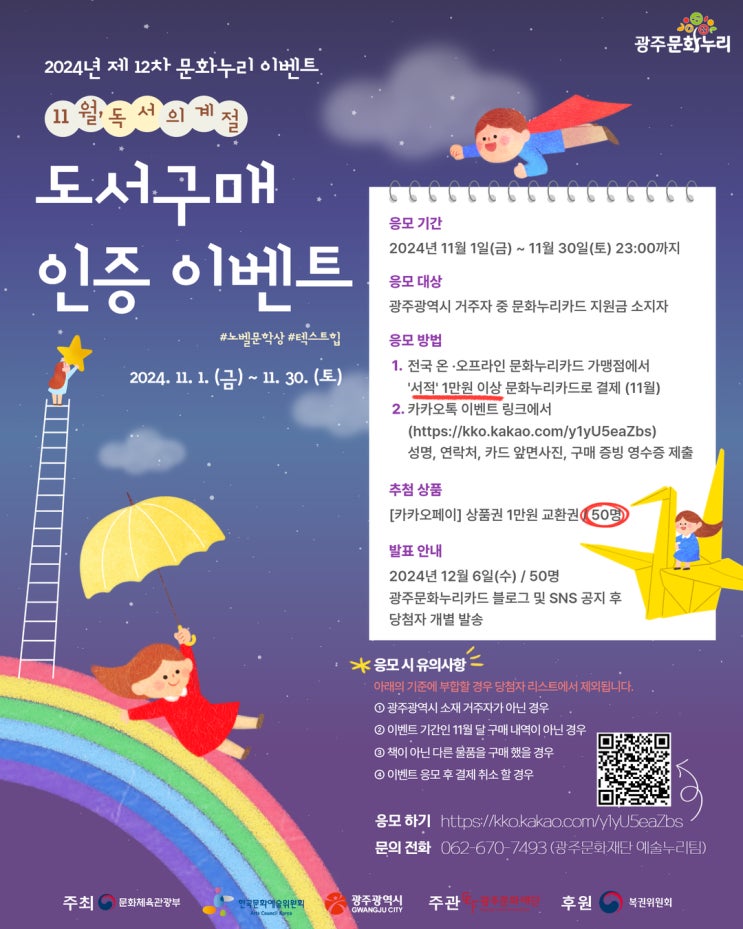 2024년 11월 광주문화누리 이벤트 <도서 구매인증> 도서 구매인증하고 1만원 받아가세요!!(11.1~11.30)