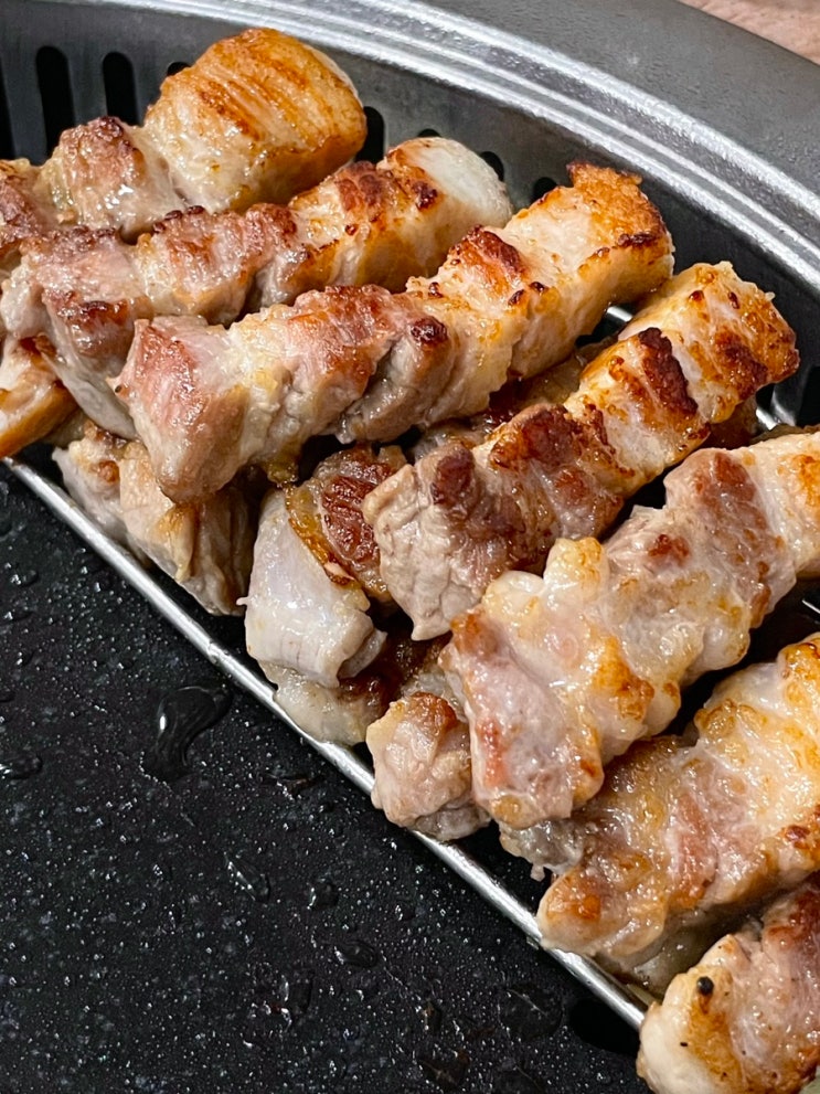 비가 추적추적 오는 날 빗소리를 들으니 불판에서 지글지글 도톰-한 삼겹살이 생각나서 삼겹살을 먹으러 가...