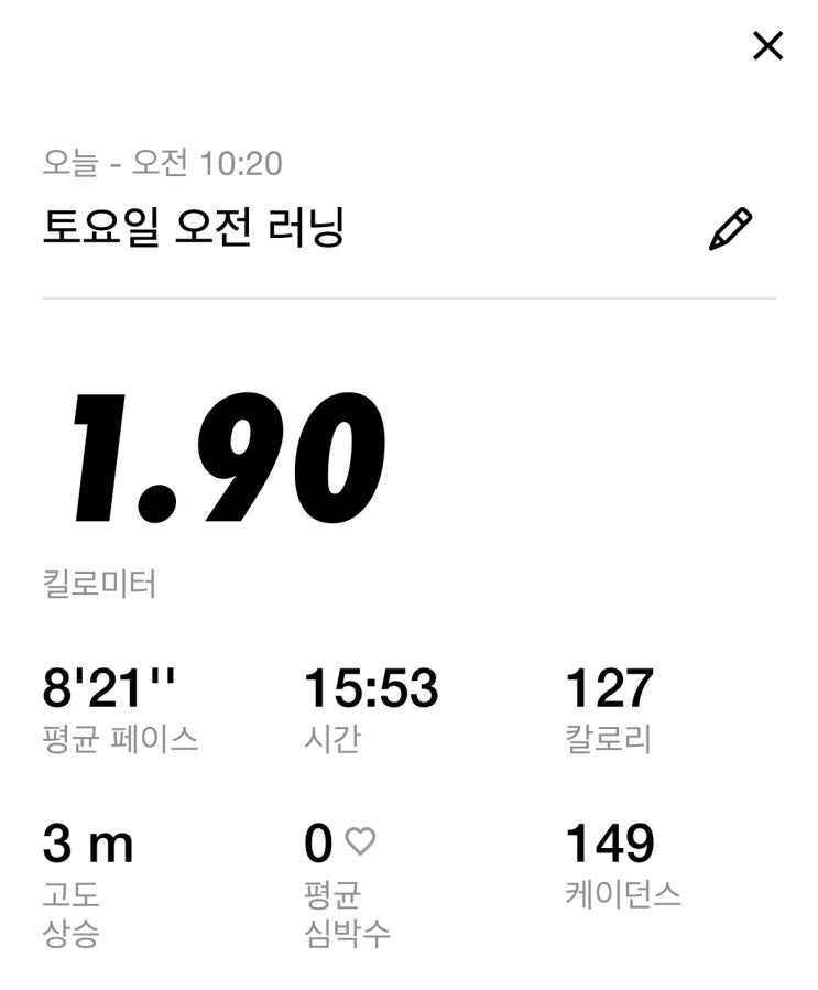 자랑 아니지만 평소 유산소 운동은 거의 하지 않았고 첫 날 100m를 겨우 달리던 내가.. 오늘은 거의 2km 를...