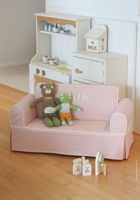 [유아소파커버] 2mm베이지체크 1인용 루키나소파커버