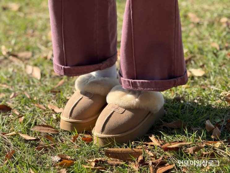 UGG 슬리퍼 착샷 오즈웨어 코게트 퍼 스트랩 밴딩 어그 슬리퍼 사이즈 팁