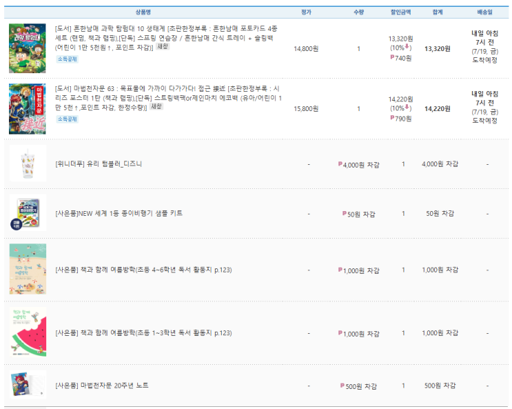 둘째 우산 산지 얼마 안 됐는데 다 떨어짐 ㅡㅡ 우산 필요하대서 예스24 장바구니 털기 마법천자문 63권 신...
