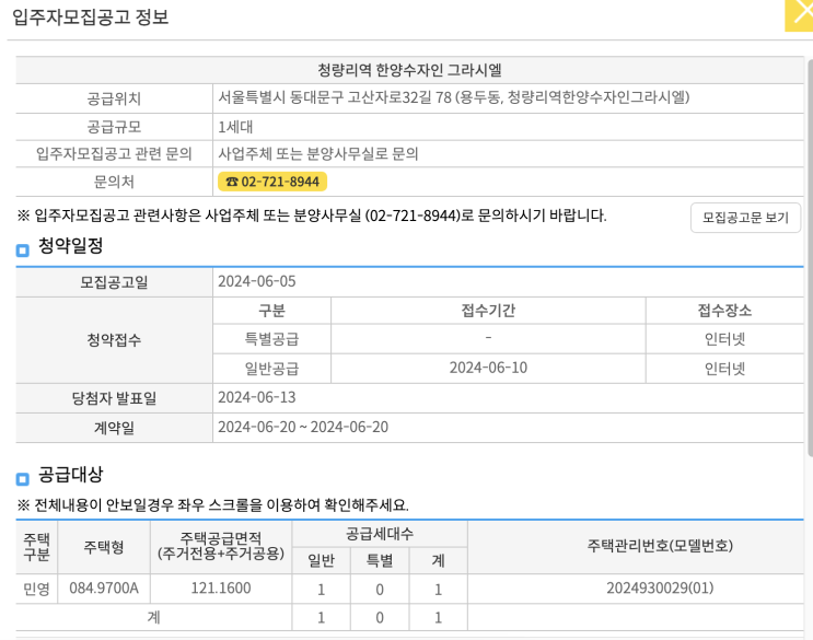 청량리/한양수자인 그라시엘/로또청약(무순위) 6.10(청약앱.홈페이지)