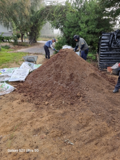 내년 준비 합니다. 무궁화 분갈이 상토제조 ㅈ하였 습니다. 상토7에 마사3 비율로 만들어 습니다 가을에 낙...