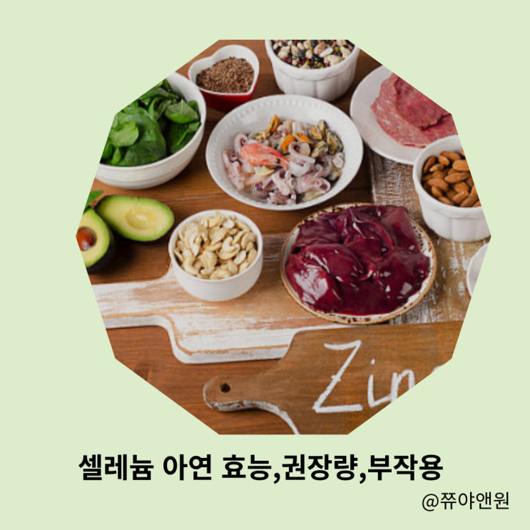 안녕하세요? 생활건강을 알려드리는 쮸야앤원입니다. 오늘은 셀레늄과 아연의 효능과 권장량, 부작용에 대...