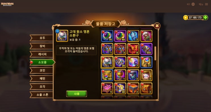 히어로워즈, 코스믹 시즌에서 받은 토템 오픈.