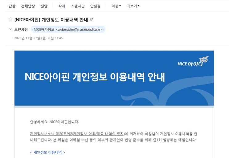 먼저, 작년에 왔던 오리지날 NICE아이핀/NICE평가정보 메일 입니다. 이번에 새로 변경되어서 온 N...