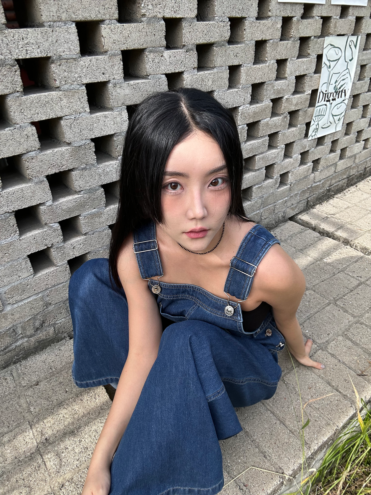 데님오버롤팬츠 SJYP 멜빵바지 입고 썸머피크닉룩 하기